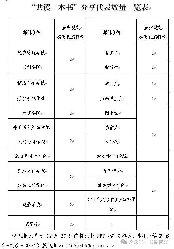 请各职能部门/学院认真准备,确保分享会取得实效,共同推动“共读一本书”活动深入开展。
